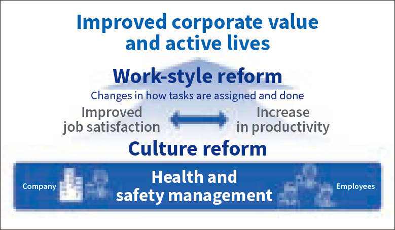 To accomplish work-style reform, individual employees need to be able to demonstrate their full capabilities, more than anything. To do so, they also need to be able to work in a safe and healthy manner and live a satisfied life. For this reason, we must have a health and safety activity that helps energize employees.
