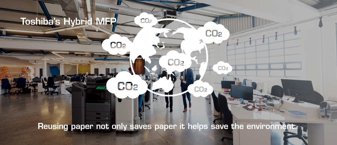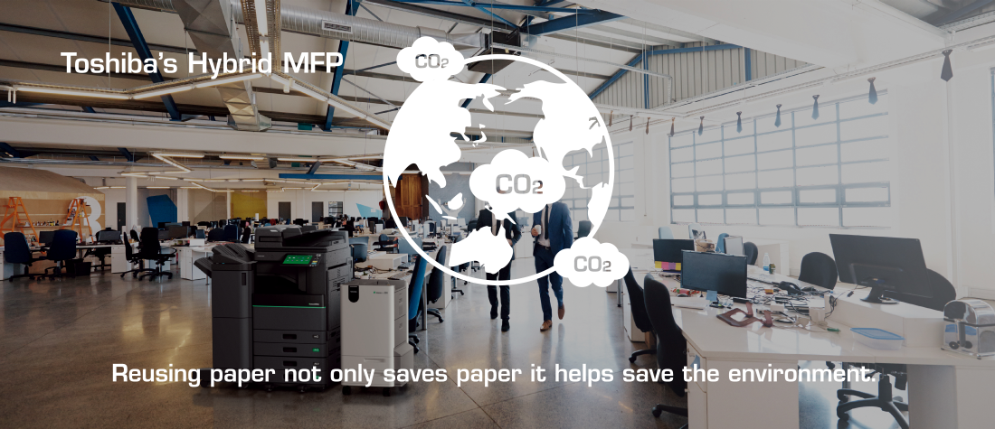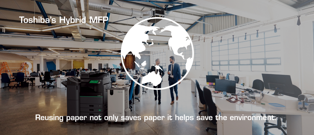 The Toshiba Hybrid MFP is ecologically responsible. Reusing paper means less paper has to be manufactured—reducing CO2. Fewer trees have to be cut and less water used. It is environmentally friendly and benefits the entire ecology.