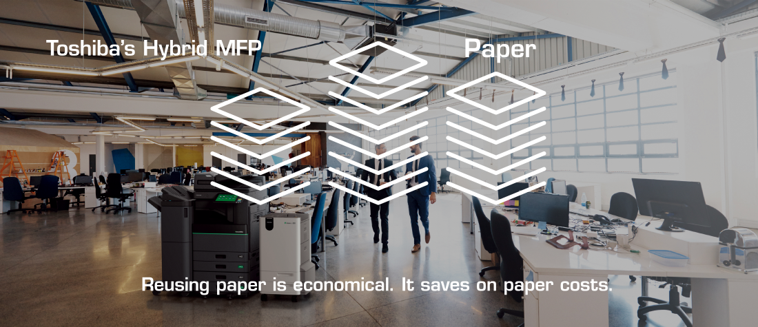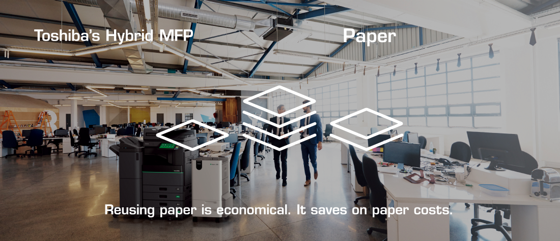 Office users typically print documents and dispose of them as waste within a week. The Toshiba Hybrid MFP allows users to erase documents and reuse the paper over and over again, saving the cost of buying new paper and the cost of disposal and also reduce the need for office storage space.
