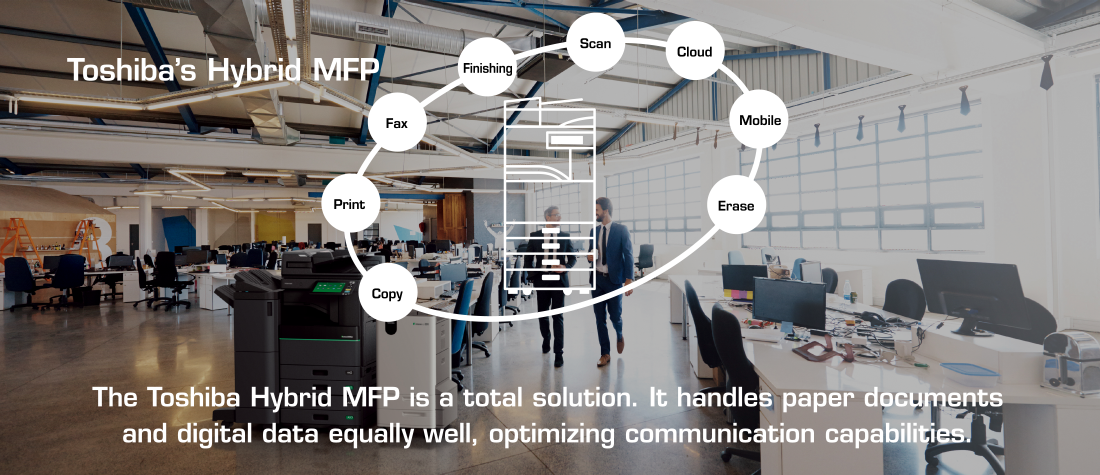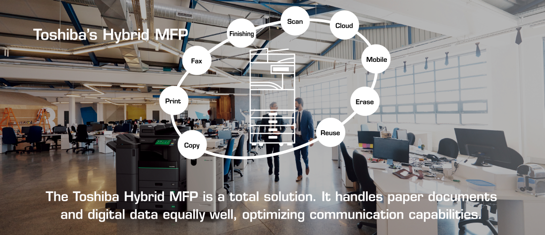 This MFP is designed to optimize conventional office workflows. However, it also offers a new way of working. You can now erase documents and reuse the paper in addition to digitizing documents and copying, printing, faxing and scanning with full mobile and Cloud service integration.